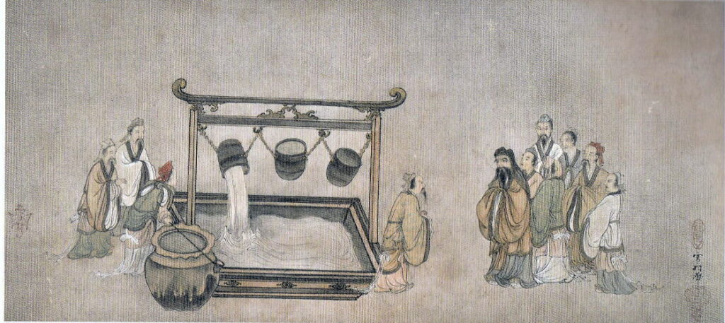 この話は、『荀子』の「宥坐篇」に見られる寓話で、過ぎたるは及ばざるがごとしという思想を具体的に示したものです。